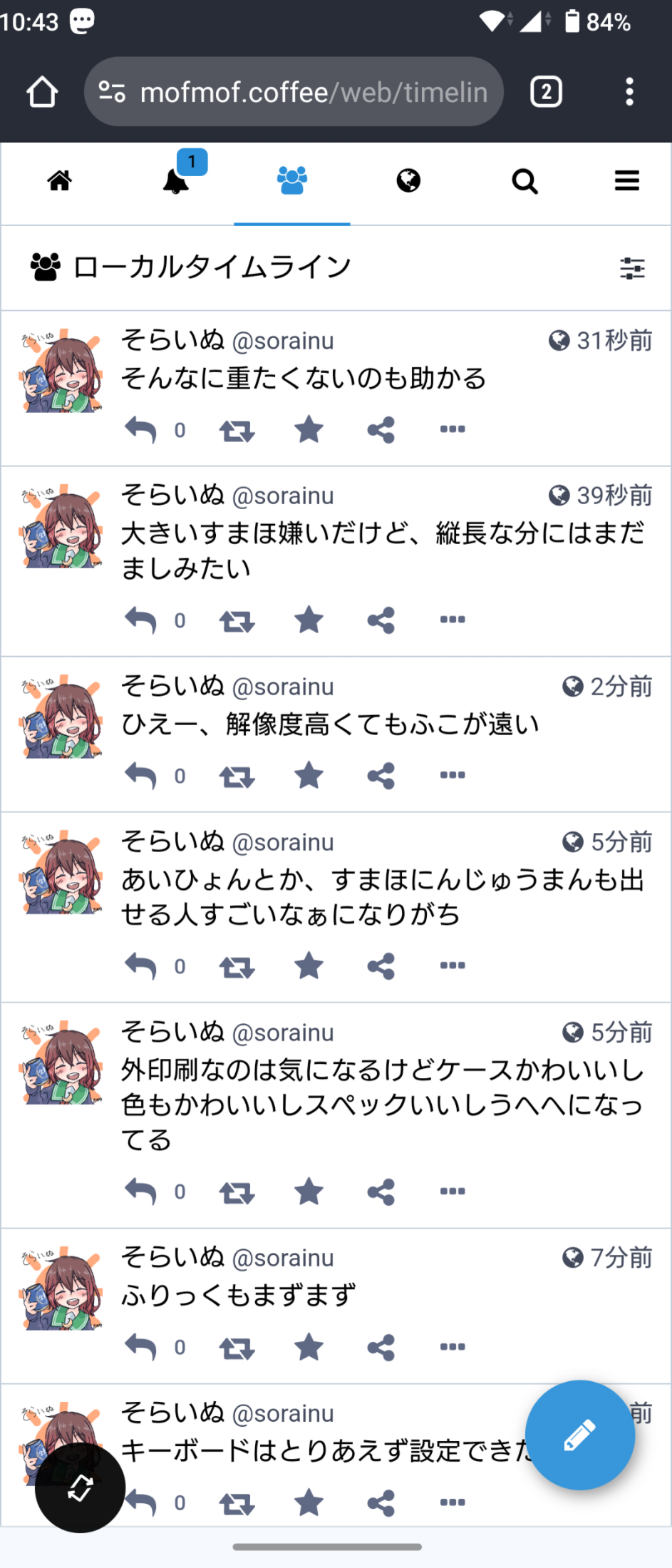 んあ〜 あたらしいすまほちゃん画面鮮やかでいいなあ